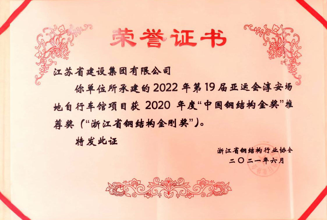 千岛湖亚运场馆项目获得浙江省2020年钢结构金奖