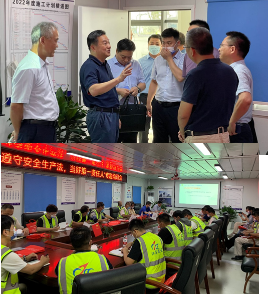 当日,适逢建设集团邀请专家对项目参建人员开展题为《落实企业安全生产主体责任 当好第一责任人》的安全教育讲座,高平处长一行走进讲座现场,与专家交流企业安全生产的工作要点和注意事项,并勉励与会人员牢记安全生产规章制度,坚持安全第一理念。
